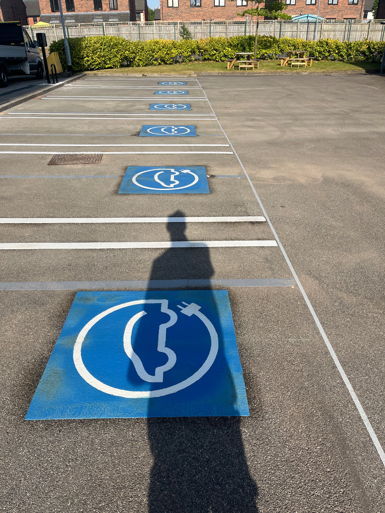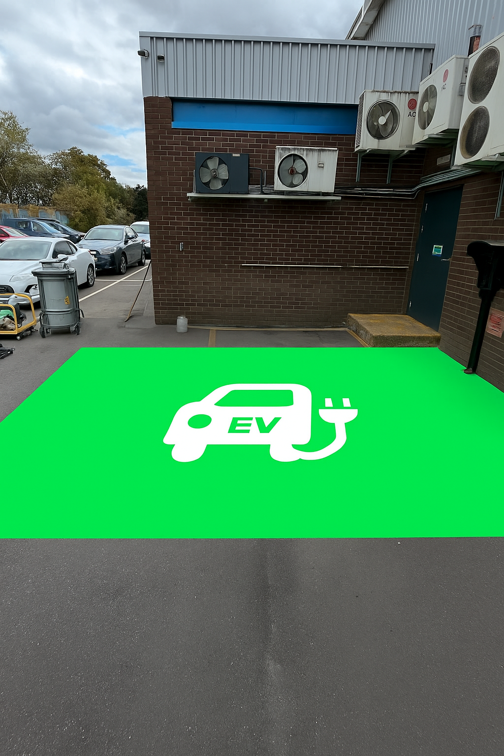 Bright, durable thermoplastic markings make EV charging bays instantly recognisable and accessible. Our MMA cold lay thermoplastic provides a hard-wearing finish with excellent colour visibility, ensuring EV bays stand out clearly. With its fast drying time, MMA minimises disruption on site, allowing spaces to be ready for use quickly. Clear green colouring with bold white EV symbols not only improves safety and compliance but also demonstrates your commitment to sustainability. A well-marked charging space helps drivers quickly identify where to park and charge, reducing confusion and maximising efficiency.
